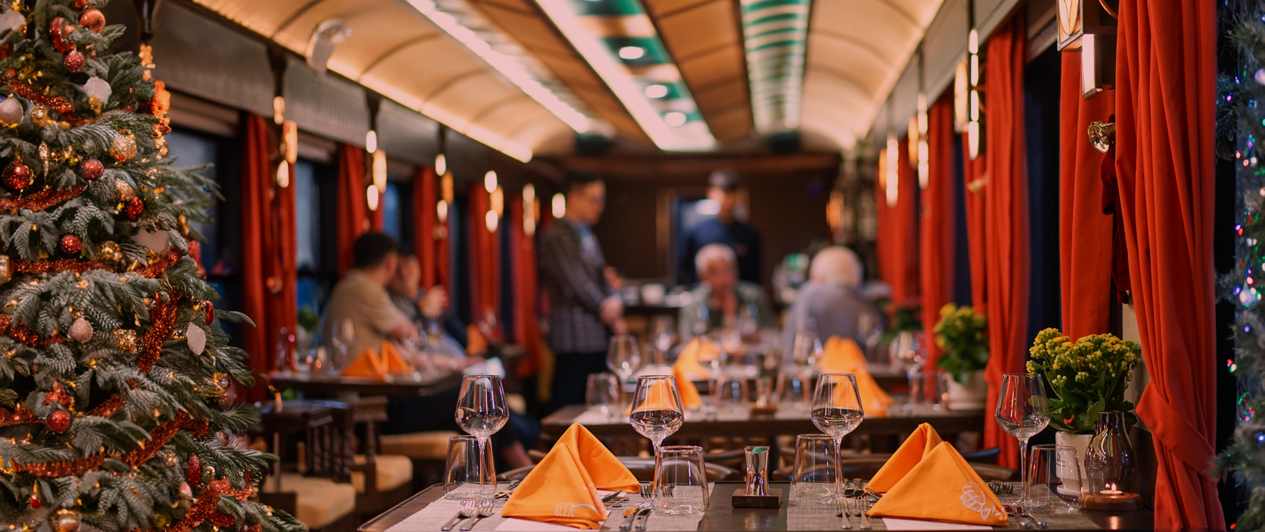 Begin your luxury rail adventure with VIP lounge access at Gia Lam Station. Board the opulent SJourney train for a welcome celebration dinner as you cross the iconic Long Bien Bridge, watching Hanoi's lights fade into the tranquil countryside. In this festive journey, Christmas Eve'll come alive with a choir on board—candlelight, harmony, and timeless carols filling every carriage.
